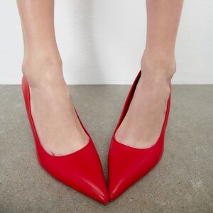ZARA High Heeled Leather Red Pumps Size US 8 BNWT