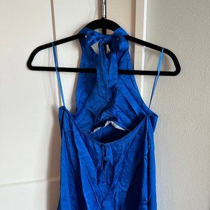 ZARA High Neck Open Back / Backless Satin Mini Halter Dress Royal Blue