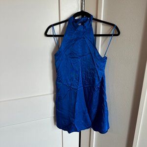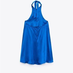 ZARA High Neck Open Back Satin Mini Halter Dress Royal Blue Size Small