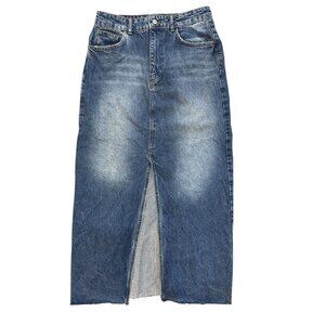 ZARA High Rise Denim Maxi Skirt Size Large Raw Hem 100% Cotton Dark Wash Boho