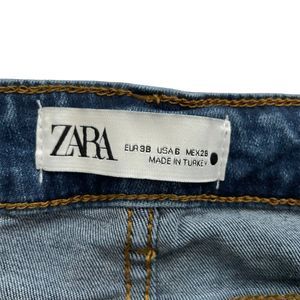 ZARA High Rise Flare Leg Full Length Jean Stretch Medium Wash Size 6 Long