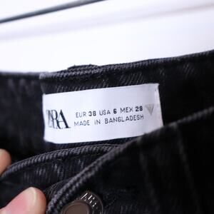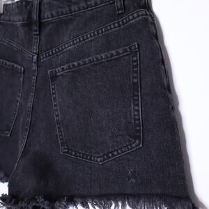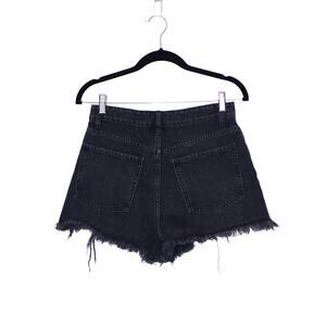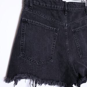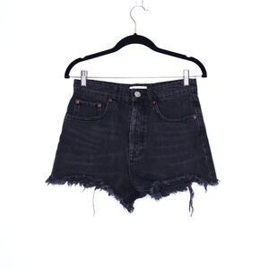 ZARA High Rise Frayed Denim Shorts Black Stone Washed Cutoff Casual Women's 6