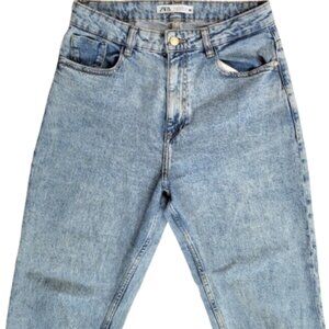 ZARA High Rise Light Wash Blue Denim Mom Jeans - Women's USA 8