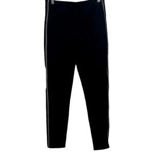 ZARA High Rise Side Appliqués Rhinestone Stripes Stretch Cropped Trouser Pants Elastic Waist M Black Cotton Rayon Elastane Polyester