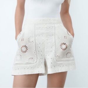 ZARA High-Rise Embroidered Eyelet Shorts - White Large NWT