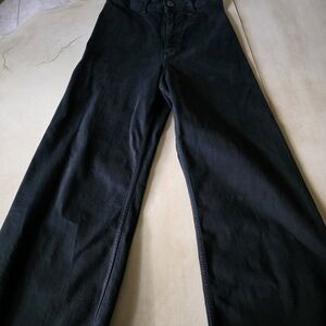 Elevate your look with these on-trend ZARA high-waisted wide-leg trousers in a versatile black color.
