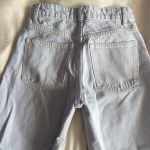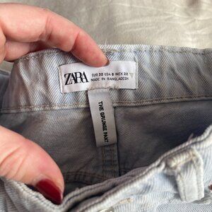 ZARA High-Waisted Grunge Jeans | Light Wash Denim | Frayed Hem | Button Fly | Si