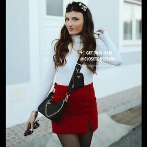 BLOGGER FAVE!!! Burgundy high-waisted skirt with front slit. Interior lining. Side hidden in-seam zip closure. From ZARA, in size M. New with tags. Sold out in stores.