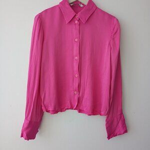 ZARA Hot Pink Button-Down Blouse Long Sleeve Satin Look - Size S