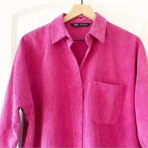 ZARA Hot Pink Corduroy Button Up Oversized Shacket Size Small
