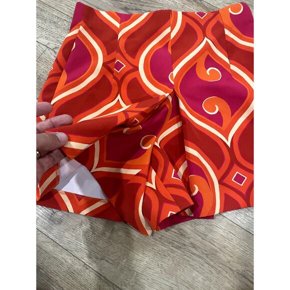 ZARA Hot Pink FuchsiaOrange Geometric Printed High Waisted Pleated Shorts Size S