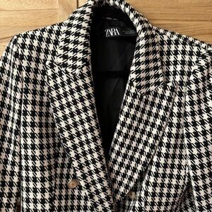 ZARA Houndstooth Tweed Blazer Jacket Size L