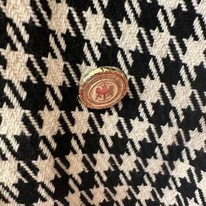 Long sleeves, Houndstooth pattern/weave; Gold buttons,