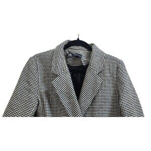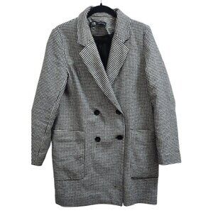 ZARA Houndstooth Tweed Frayed Jacket Blazer Coat - Size S - Black & White Check