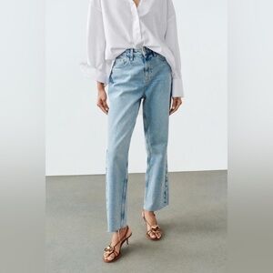 ZARA Indigo High Waist High Rise Straight Ankle Grazer Rigid Denim Size 8/29