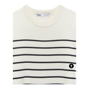 ZARA Ivory Black Stripe Long Sleeve Knit Midi Sweater Dress XL NWT Blogger
