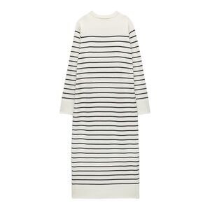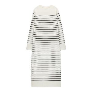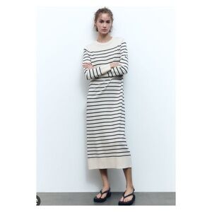 NEW with tags ZARA Blogger Favorite Beige Black Stripe Long Sleeve Knit Sweater Midi Dress
