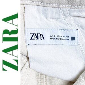 ZARA Ivory Cream 100% Cotton Wide Leg High Rise Drawstring Cuff Jeans, Size Small