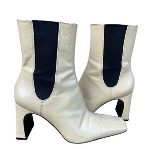 ZARA Ivory Cream Patent Leather Mid Calf Chelsea Boots Size 6