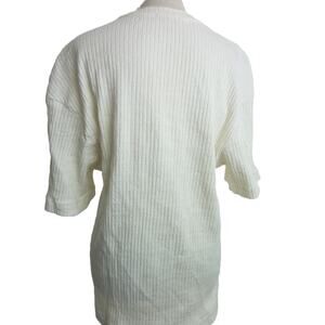 ZARA Ivory Cream Textured Ribbed Knit Short Sleeve Loose Fit Sweater M