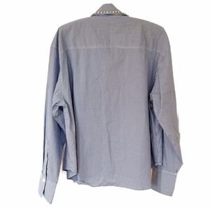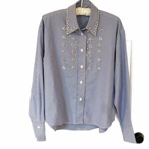ZARA JEWEL APPLIQUÉ POPLIN STRIPE BLUE WHITE SHIRT