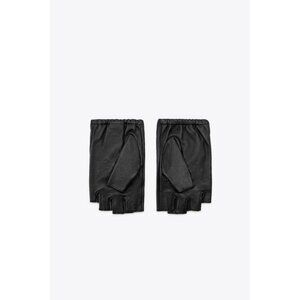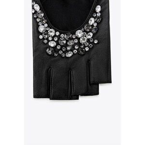 Short fingerless-style gloves made from 100% leather. Featuring contrasting jewel appliqué detail.
