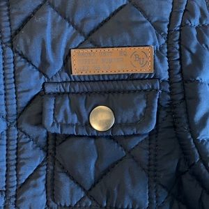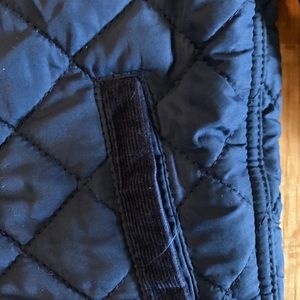 Navy Quilted Jacket with Corduroy Elbow Patches and Pocket Lining. Excellent Condition!