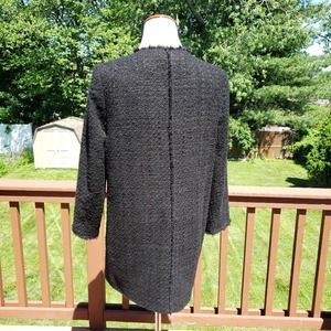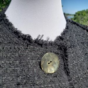 ZARA Jacket Fringed Textured Pockets Huge Buttons Black L