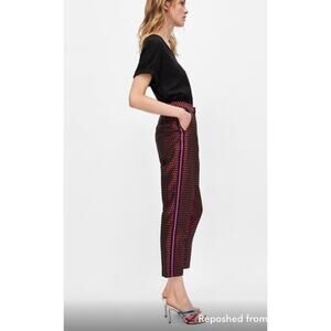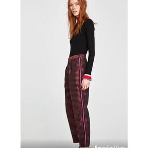 ZARA Jacquard Red Floral Print Pants SZ SM