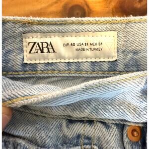 ZARA Jean Shorts/Jorts. Light Wash Denim. Distressed. Size: 31 Waist