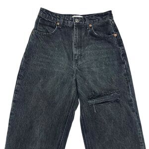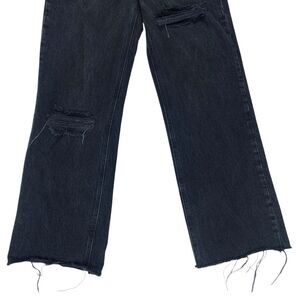 - Description: ZARA Jeans Women 4 Black High Rise Wide Leg Raw Hem Distressed Relaxed Fit Denim