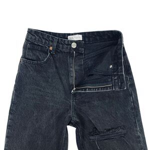ZARA Jeans Women 4 Black High Rise Wide Leg Raw Hem Distressed Relaxed Fit Denim