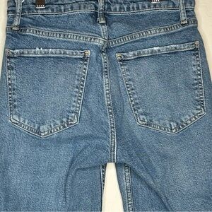 ZARA Jeans women’s size 4 blue denim slim fit hi-rise 90’s straight leg cropped frayed hem jeans. Great pre-owned condition. Perfect jeans for everyday and can easily be dressed up or casual.