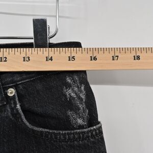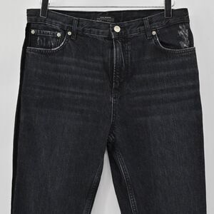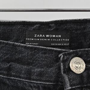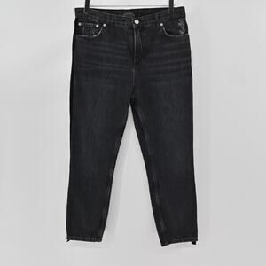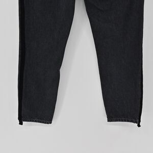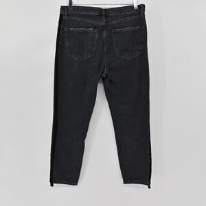 ZARA Jeans Women's Size 6 Black Wash With Black Side Stripe Premium Denim Collection High Rise Tapered Leg Distressed Pockets Zip Fly Button Closure Grunge Retro