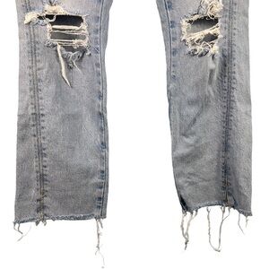 ZARA Jeans Womens Size 6 High Waist Distressed Light Wash Denim Raw Hem Straight