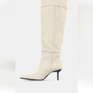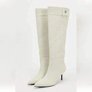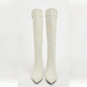 ZARA KNEE HIGH HEELED DENIM BOOTS