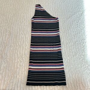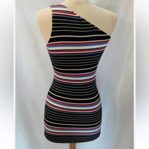 ZARA KNIT One Shoulder Striped Bodycon Stretch Mini Dress Women’s Medium