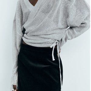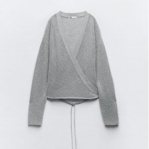 ZARA KNIT WRAP CARDIGAN WITH METALLIC THREAD