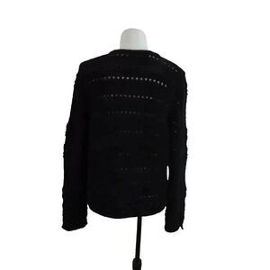 ZARA KNIT Womens Open Weave Crochet SWEATER - Size SMALL - Black Tassel …