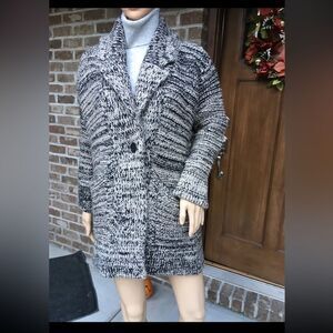 ZARA KNITS Oversized Chunky Knit Cardigan Sweater Ecru Black 3859/131 Sz Small