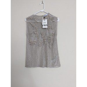 ZARA KNITWEAR TOP WITH FAUX PEARLS LIMITED EDITION LIGHT GREY S M REF. 7521/107