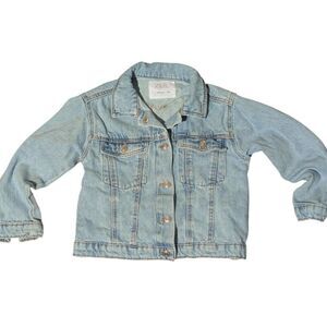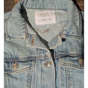 ZARA Kids 4-5 Years Light Wash Denim Trucker Jacket- Big Heart Patch Back