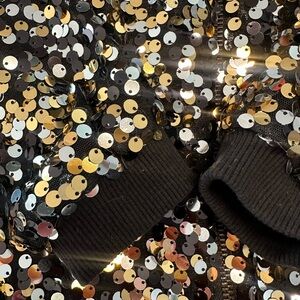ZARA Kids gold, silver and black sequins jacket with front zip, elasticated wrists, fully lined with black cotton fabric. Excellent condition.