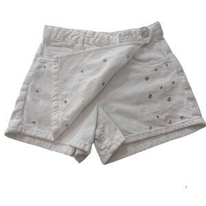 Trendy and stylish white denim shorts from ZARA Kids, featuring silver-tone eyelet accents for a modern, chic look. Designed with a comfortable fit, classic 5-pocket style, and adjustable interior waistband for the perfect fit.