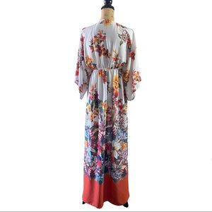 ZARA Kimono Floral Maxi Dress Boho Festival Vacation Beachwear Size Small