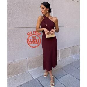 Maroon knit dress with asymmetric neckline. From ZARA, in size M. New with tags. Sold out in stores.