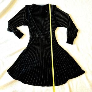 Perfect dress for all the holidays events:) Color black with gold metallic stripes. Size S. Stretchy knit, viscose blend material. Length about 37”. Gently worn only few times - in great condition!