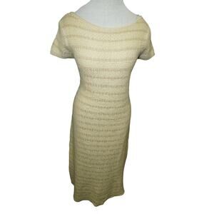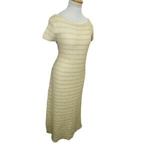 ZARA Knit Midi Dress – Size Small – Cream Textured Short Sleeve Sweater Dress