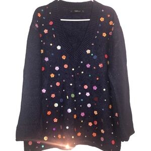 ZARA Knit Oversized Woman’s Sweater Pullover Sequins Beads Size Small