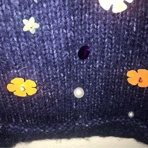 Navy Blue Oversized Pullover Colorful Sequin Faux Pearls